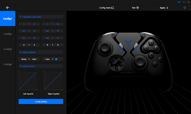 Переключение между профилями осуществляется с помощью комбинации кнопок MENU + BACK. Все настройки сохраняются в память геймпада, приложение понадобится вам только для настройки. В режиме Bluetooth встроенные профили работают, но только для переключения подсветки. Настройки кнопок, в режиме Bluetooth, свои и не связаны с настройками кнопок для подключения через адаптер. А вот небольшое видео, демонстрирующее возможности приложения: