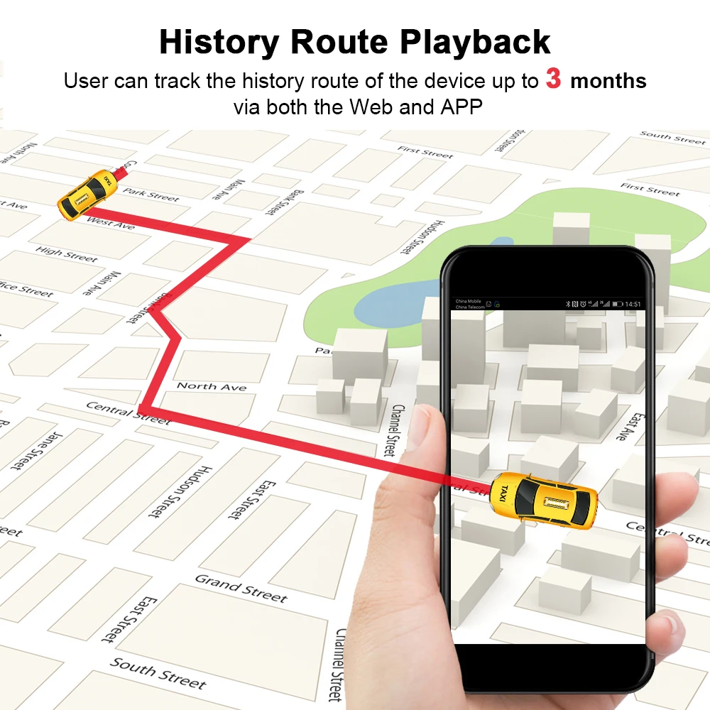 * Воспроизведение маршрута истории в приложении и веб-сервер, данные могут сохранять до 3 месяцев