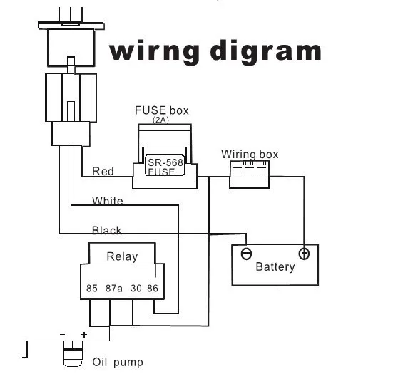 4. Если необходимо добавить реле контроля масла, пожалуйста, установите белую линию в соответствии с схемой delow.