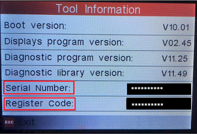 LAUNCH Creader Professional CRP123 User’s Manual Figure 7-5 Press [ ] to return to the previous screen. 7.4 Tool Information In Figure 7-1, select [Tool Information] and press [ ] to view the related information of CRP123. Figure 7-6 Note: You are strongly recommended to note down the Serial Number and Register Code in Figure 7-6 since these 2 pieces of information are required while registering your CRP123.