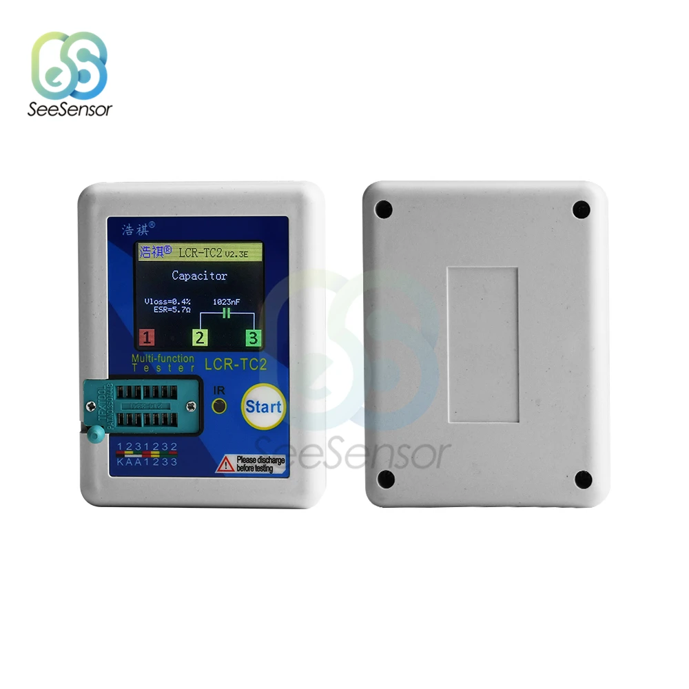 LCR-TC2 мультиметр для тестера транзисторов, цветной дисплей для диодов, триодов, MOS/PNP/NPN конденсаторов, резисторов, транзисторов (в пластиковом корпусе с клипсами)