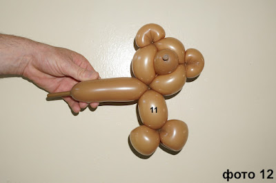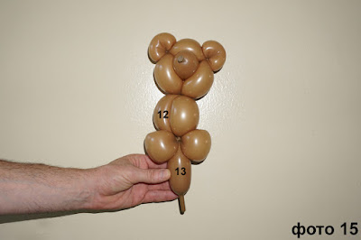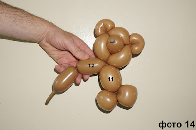Замыкаем свободный конец двенадцатого пузыря между пузырями ног (фото 15). Делаем тринадцатый примерно 7 см пузырь. Он должен быть такой же длины как и двенадцатый пузырь.