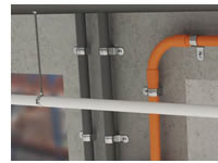 Универсальное решение для монтажа огнестойких кабельных линий различных типов пластиковых электротехнических труб Экопласт™ и металлических лотков. Варианты прокладки и крепления кабеля к несущей поверхности или конструкции: одно-двухлапковые скобы, трубные хомуты, металлические хомуты (стяжки), укладка в металлический лоток. Рекомендованы для различного типа объектов гражданского строительства.