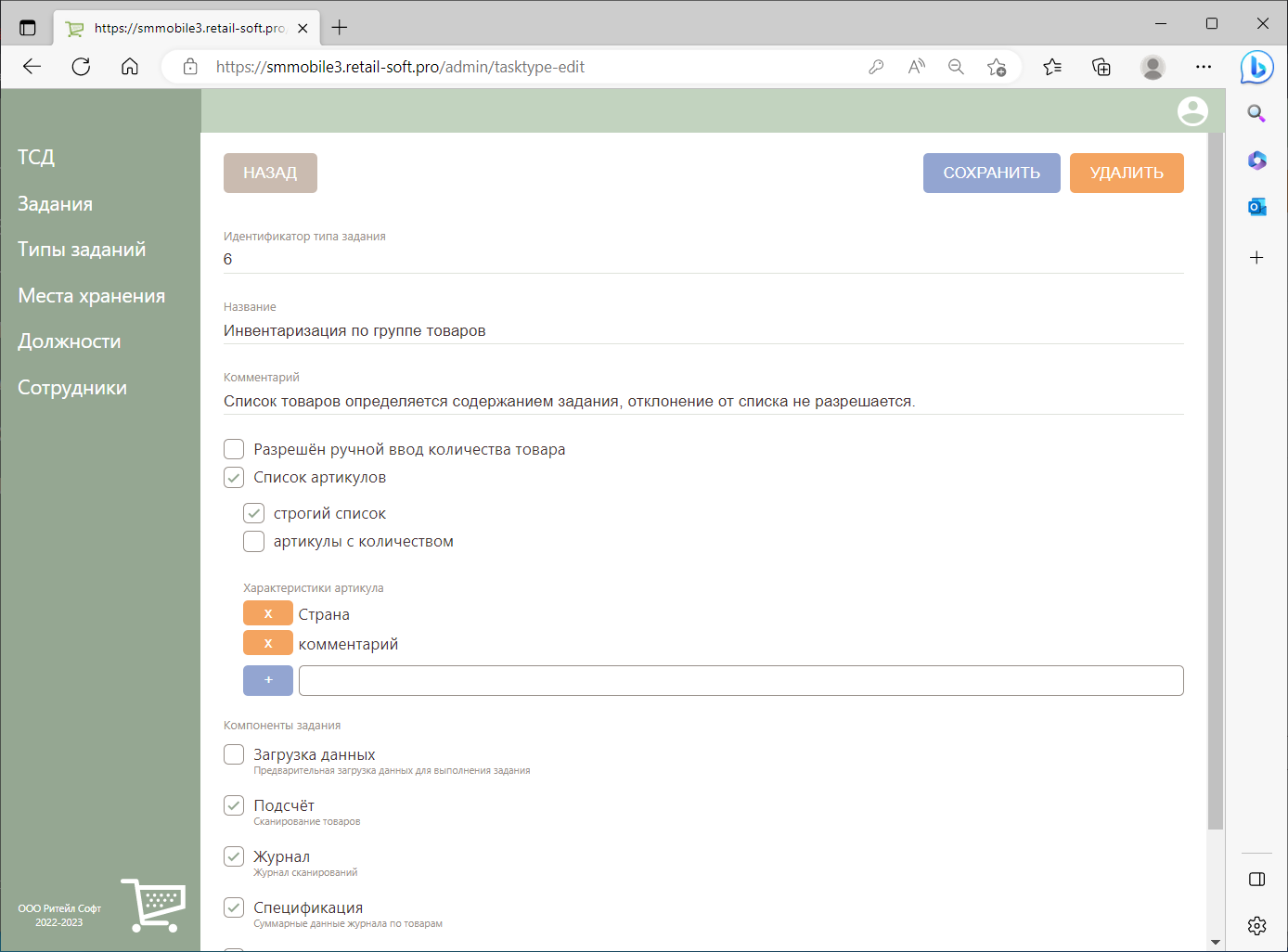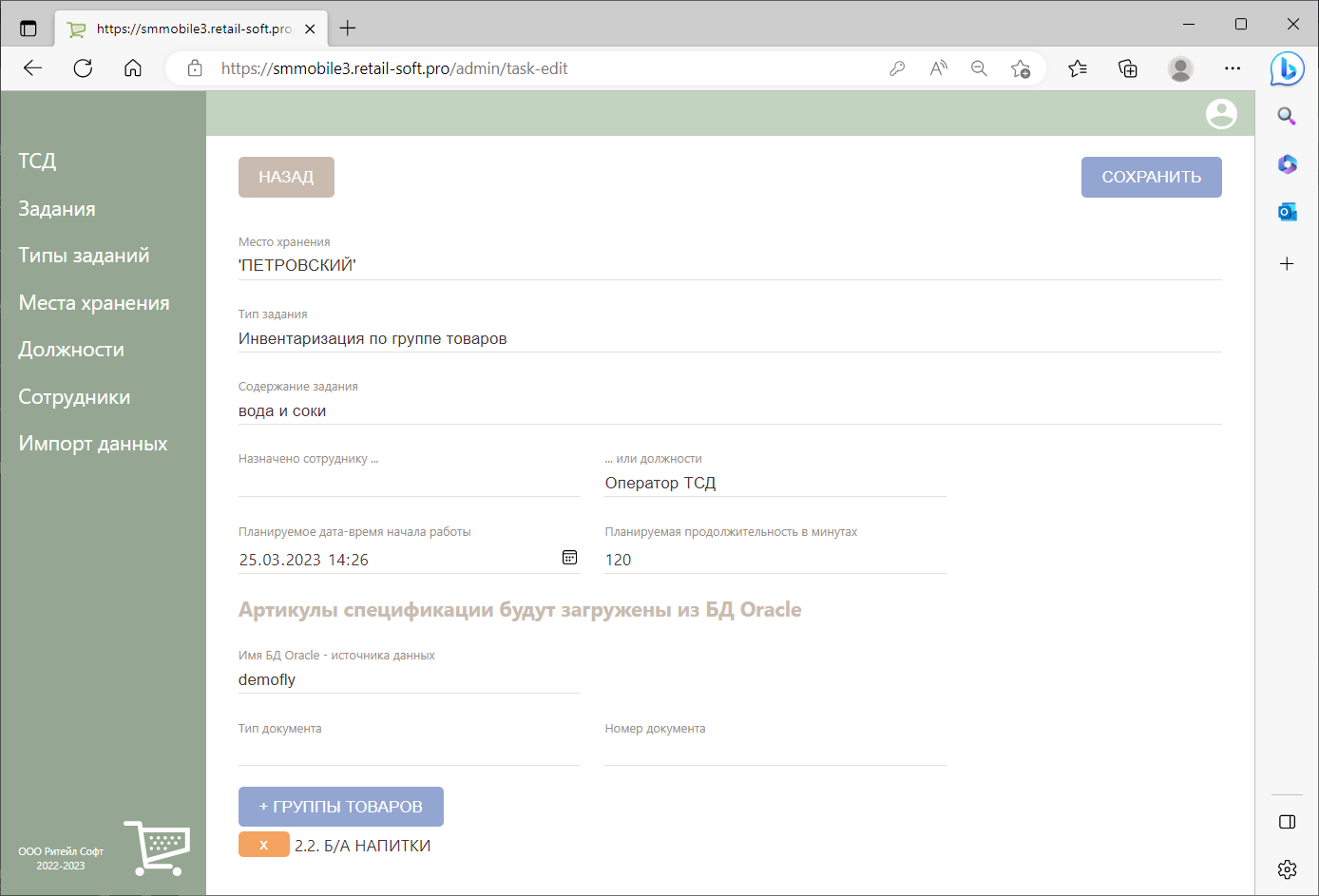 интерфейса администратора. Заполняет его данными, для выполнения заданий, и заданиями, либо вручную, либо используя собственные системы уровня бэк-офис, например, Супермаг+ или 1С. А также забирает в бэк-офис и обрабатывает в нем результаты выполнения заданий. Для заполнения кабинета данными такими, как списки артикулов и их описание, штриховые коды, перечень мест хранения, цены, остатки, задания и т.д., предоставляется соответствующий
