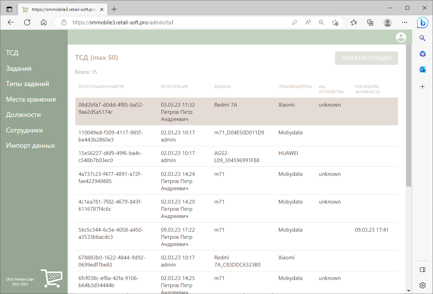 В случае, когда устройство утеряно, не работоспособно или не доступно для разрегистрации, администратор может выполнить разрегистрацию в интерфейсе администратора. После разрегистрации никакие действия по выполнению задания или выгрузки результатов выполнения задания будут недоступны. Если на устройстве выполнялось задание, его результаты после разрегистрации устройства передать на сервер будет невозможно.
