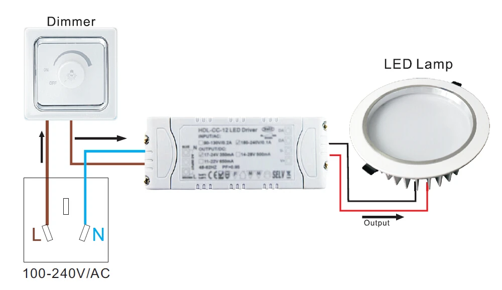 Светодиоды включаются через стабилизатор тока – драйвер. Он снижает напряжение на последовательных и параллельных цепочках светодиодов и стабилизирует ток через них.