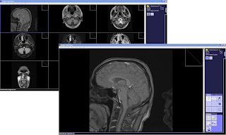 Часто открывается несколько окон с аксиальными, корональными, и сагиттальными изображениями, связанные вместе.