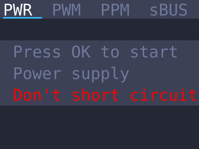 Режим PWM используется для измерения уровня PWM-импульса на каналах приемника. Можно просто подключить забинденный приемник через серво-удлиннитель к прибору любым из каналов. На приемник будет подаваться напряжение 5В.